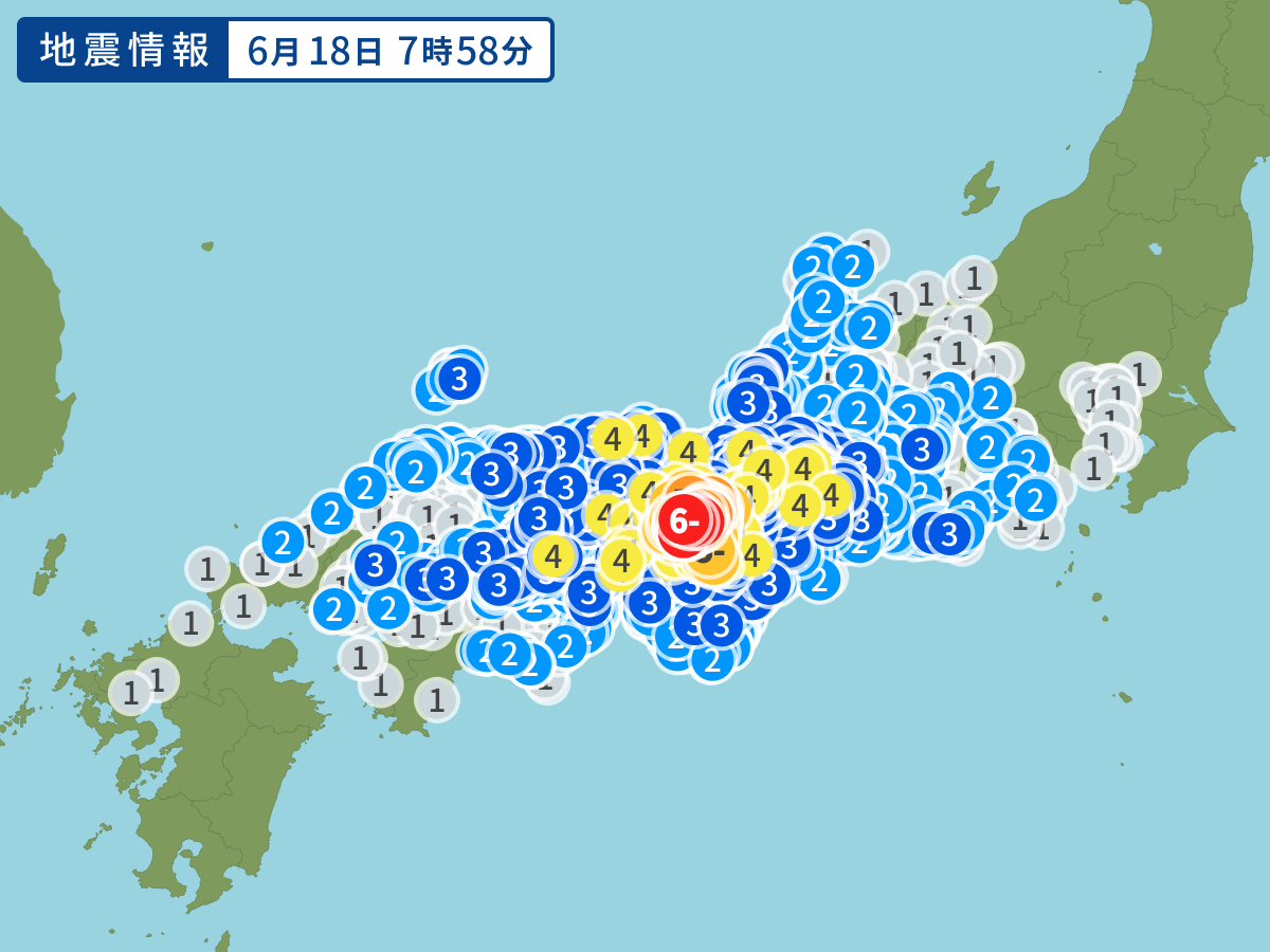 地震情報(2018年6月18日)最大震度6弱|震源地:大阪府北部 - Yahoo!天気・災害
