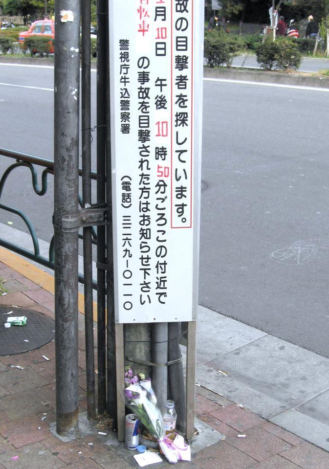 容疑者は道路交通法違反と業務上過失致死傷の疑いで逮捕された。警視庁牛込署によれば、アルコールは検出されず、同乗者はいなかった。容疑者は、弘太さんがアイドルの弟であることを知らない可能性が高いという。同署は詳細を捜査中で、現場付近には目撃情報を呼びかける看板を設置。事故現場横には、花が手向けられていた。