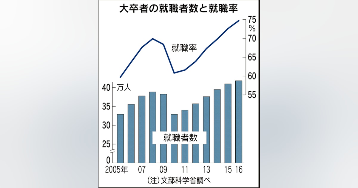 大卒就職率74.7% 6年連続上昇、正規雇用増 - 日本経済新聞