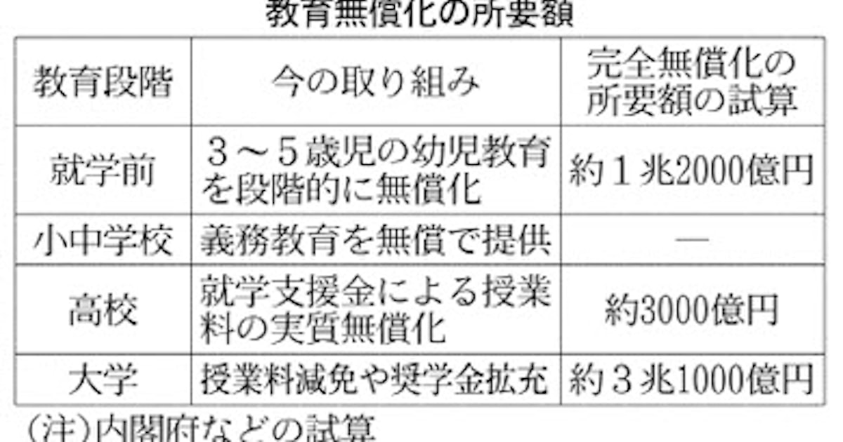 教育無償化 財源確保が課題 - 日本経済新聞