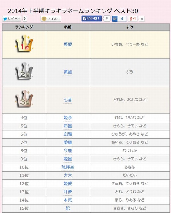 2014年上半期キラキラネームランキング1位は「苺愛」…なんて読む? | リセマム