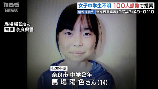 奈良女子大学付属中学2年の馬場陽色(ひいろ)さんが行方不明 1日午前7時20分ころに自宅を出たまま 事件の可能性も