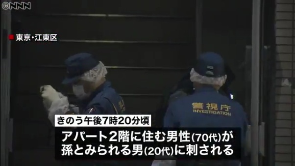 東京都江東区で70代男性が刺され重傷を負った事件で、警視庁城東署は5日、殺人未遂容疑で孫の住所、職業不詳馬場法明容疑者(29)を逮捕した。「自分の生活について罵倒され頭にきた」と容疑を認めているという。