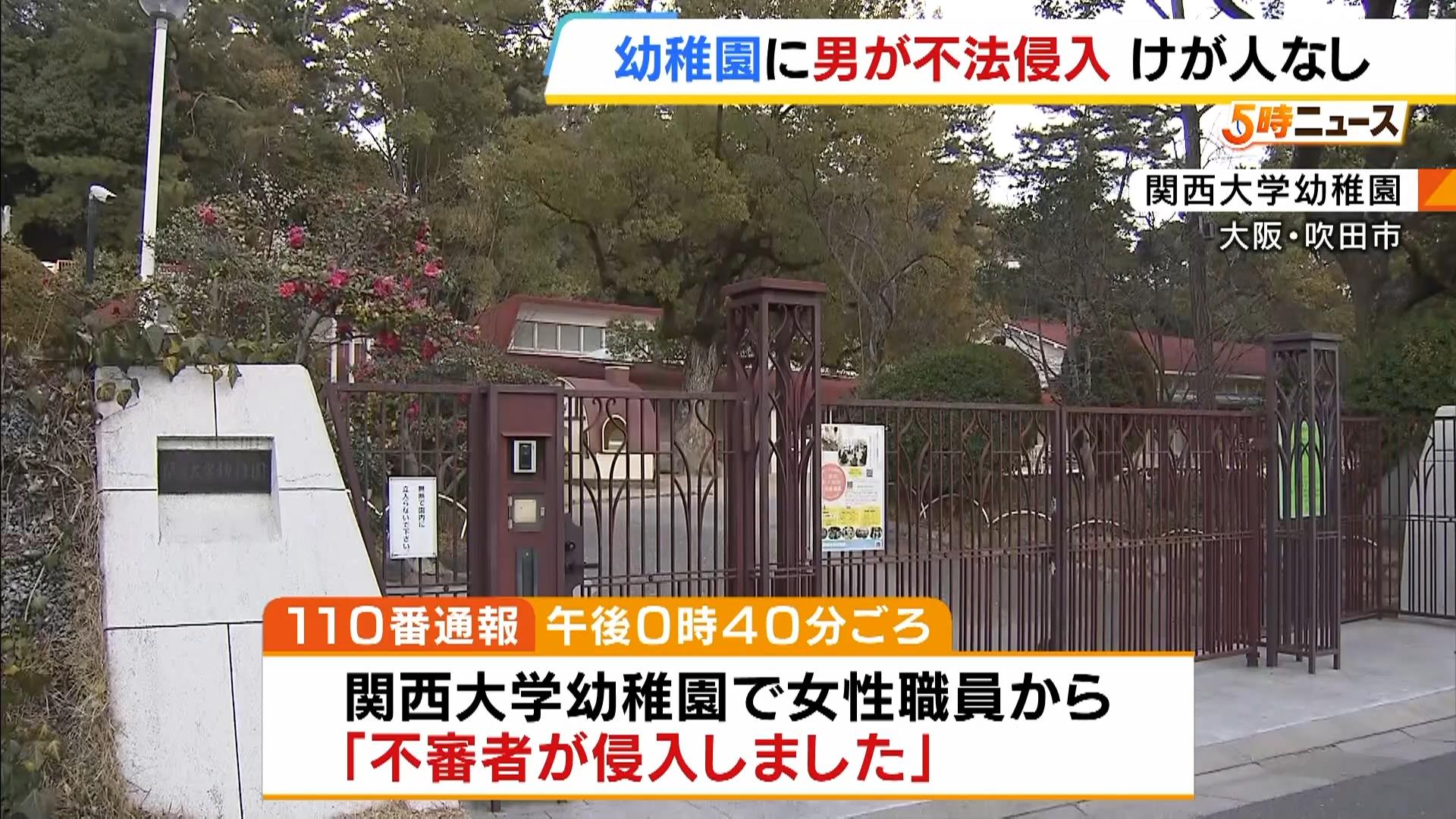 府警吹田署によると、男性は植え込みの隙間(すきま)から園庭に侵入。当時は多くの園児らが園庭で遊んでいたが、不審者に気づいた教職員らが避難させたという。
