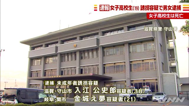 京都市内で女子高校生(19)を連れ去ったとして、滋賀県警守山署は12日、未成年者誘拐容疑でいずれも無職の入江公史郎(38)=同県守山市勝部=、金城え夢(21)=岐阜県関市池尻=両容疑者を逮捕した。女子高校生は入江容疑者の自宅で倒れているのが見つかり、死亡が確認された。司法解剖などの結果、死因は薬物中毒と判明した。