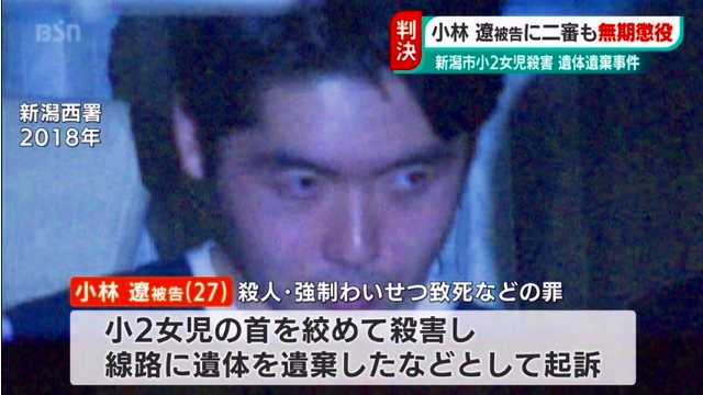 新潟小2女児殺害 2審も無期懲役 大善文男裁判長「極刑がやむを得ないとまでは言えない」 小林遼は上告の方針