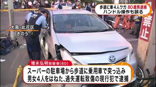高齢者のプリウスアルファ歩道に突っ込み歩行者5、6人はねる事故