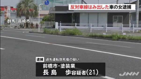 塗装工の長島歩容疑者(21)を逮捕 群馬県高崎市の市道で正面衝突 丸山円花さんが死亡 呼気からアルコール