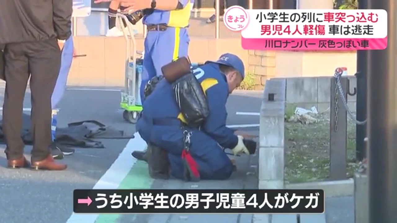 事件は14日午後4時すぎに発生。三郷市中央5丁目の市道で、下校中だった小学生10人ほどの集団に車がぶつかり、6年生4人が重軽傷を負った。
