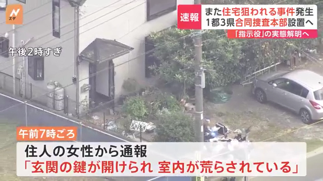 同署などによると、女性は両親と3人で暮らしており、当時は女性が2階で、両親が1階で寝ていた。男らは雨戸をこじ開け、掃き出し窓のガラスを割って侵入したとみられる。