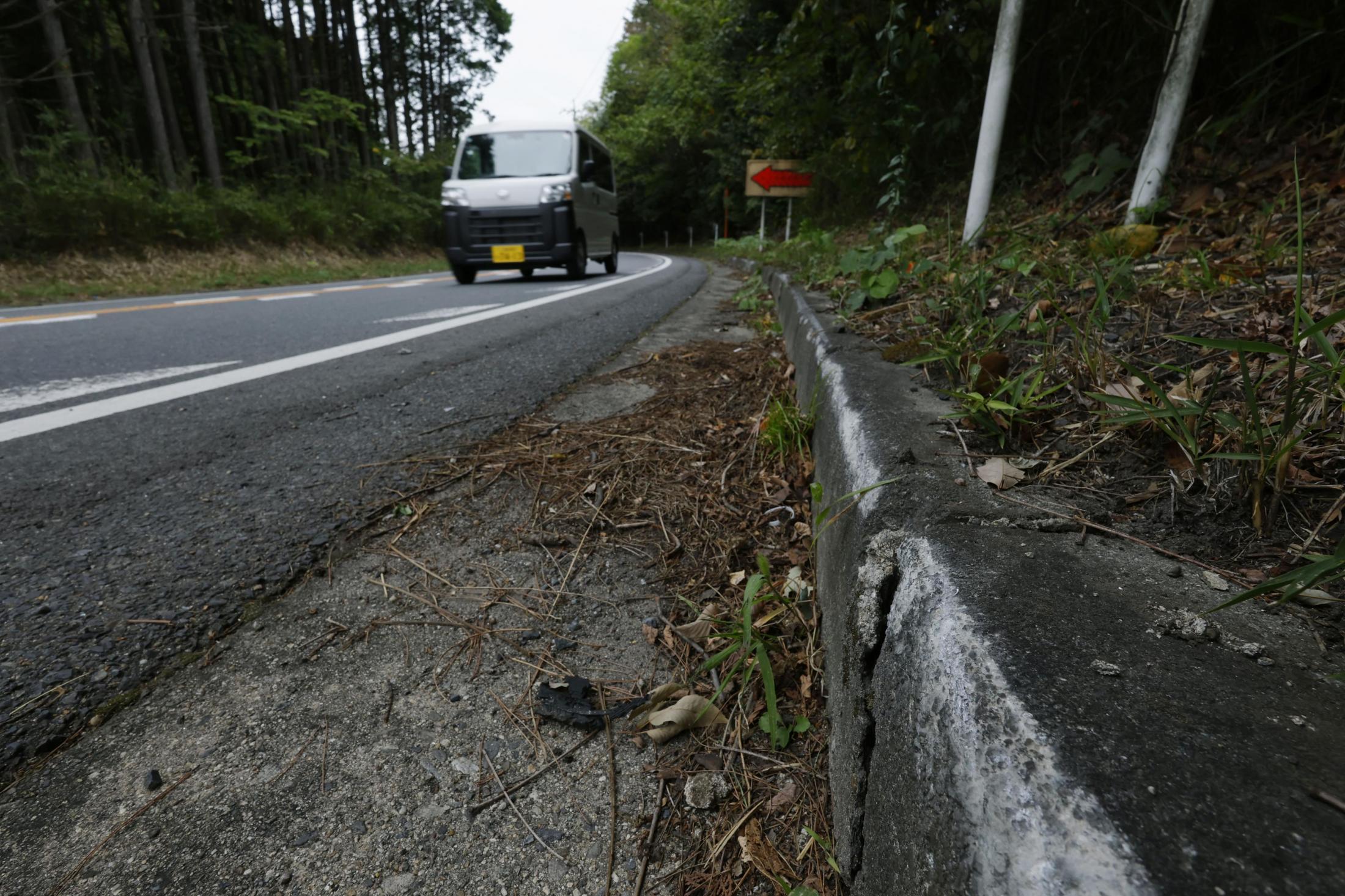 そんなキツいカーブやないけど、6人乗りの軽じゃ横転しても不思議やないな。