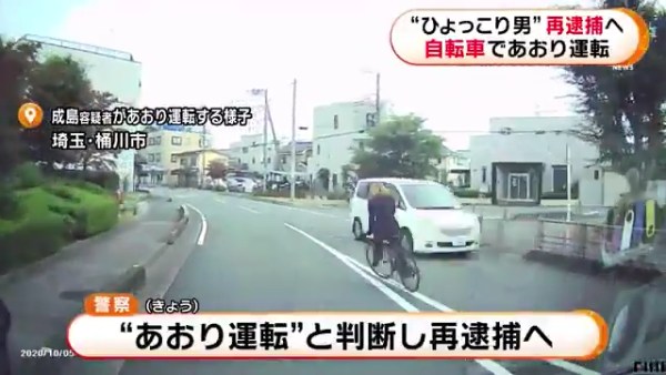 成島容疑者は今年7月、桶川市内の路上で自転車に乗り、対向車のワンボックスカーの前にわざと飛び出して、運転手に急ブレーキを踏ませた疑いがもたれています。成島容疑者は容疑を認め、「運転手の驚く顔が見たかった」「他にも十数件やった」と供述しているということです。
