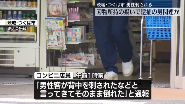 25日午前0時45分ごろ、茨城県つくば市梅園のコンビニエンスストアで、店員から「男性客が背中を刺されたなどと言って、そのまま倒れた」と110番通報があった。県警などによると、同市のアルバイト従業員