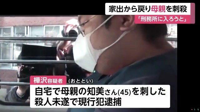 奥脇和好容疑者が母親のきぬ江さんの胸を刃物で数回刺しタオルのようなもので口や鼻をふさいで殺害