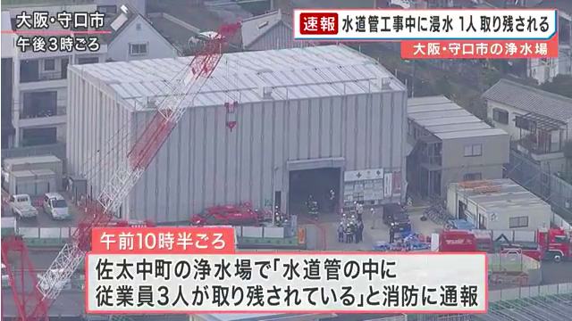 大阪府守口市で掘削中のトンネルに男性作業員(25)が取り残された事故で、発生から約47時間たった18日朝、男性が救出された。病院に搬送されたが、意識ははっきりしているという。府警や守口市門真市消防組合などによると、事故は16日午前9時半ごろ起きた。大阪広域水道企業団の浄水場から水道管を設置する作業で、掘削中のトンネルに地下水や土砂が流入し、約960メートル先の先端部にいた男性が、土砂を運ぶトロッコや土砂に塞がれるかたちで取り残された。