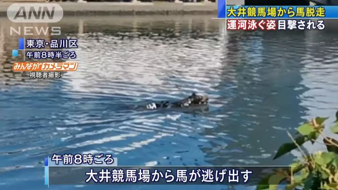 25日午前、東京 品川区の大井競馬場の近くにある交差点で馬と車がぶつかる事故がありました。警視庁と競馬場は馬小屋から逃げたとみて、詳しい状況を調べています。25日午前11時20分前、東京 品川区東大井の交差点で、馬と車がぶつかったと110番通報がありました。