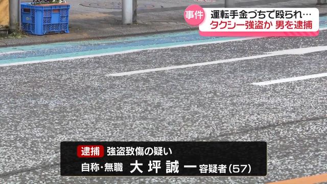 神奈川県警相模原署は29日、強盗致傷の疑いで住所不定で自称無職の男(57)を逮捕した。逮捕容疑は同日午前5時40分ごろ、相模原市中央区相模原3丁目の路上で、客として乗車したタクシーの男性運転手(64)に対して後部座席から持っていたハンマーで側頭部を数回殴りつけた。一度車外に逃げた運転手ともみ合いになった末、タクシーを奪って逃げた。運転手は軽傷を負った。