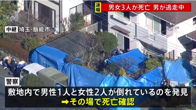 埼玉・飯能市の住宅で、親子3人が死亡して見つかった事件で、逮捕された男が、おののようなもので3人を殴った可能性があることがわかった。アメリカ国籍のウィリアム・ビショップさん(69)と妻の森田泉さん(68)、その娘の森田ソフィアナ恵さん(32)の3人が死亡しているのが見つかった事件で、警察は、近くに住む斎藤淳容疑者(40)の容疑を殺人に切り替えて送検した。