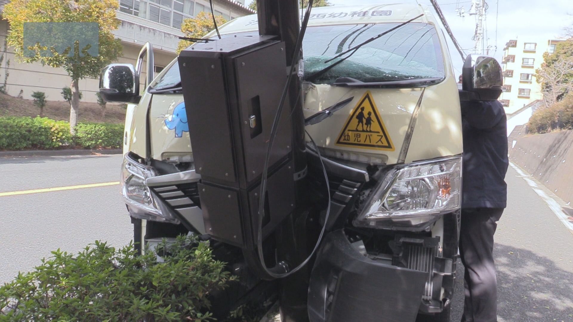 電柱に衝突したバスは汐見台西幼稚園の幼稚園バス