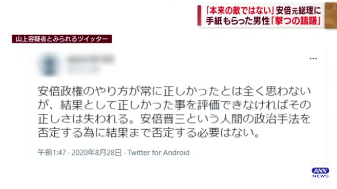 安倍晋三元首相殺害 山上徹也がブログ運営者に殺害を示唆する手紙 ブログ特定